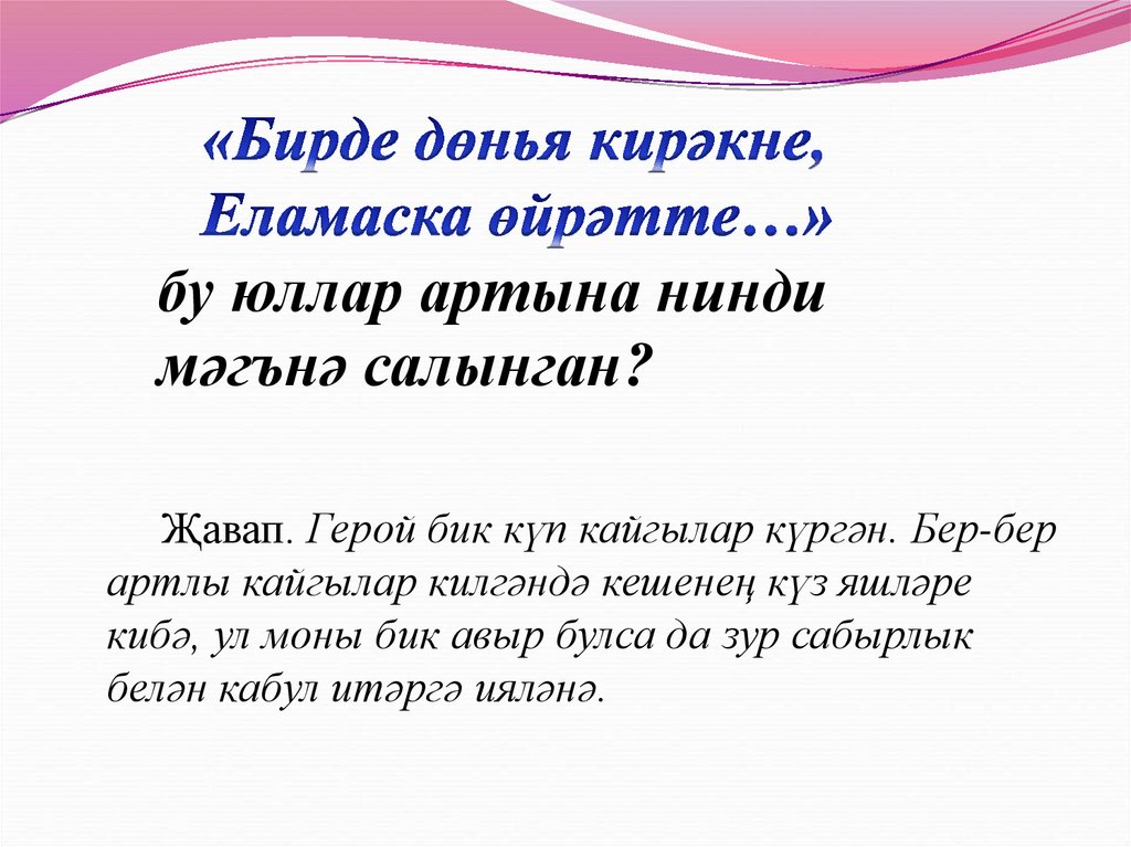 Җавап. Герой бик күп кайгылар күргән. Бер-бер