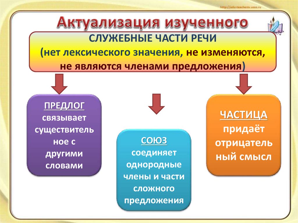 Назовите тему урока и ёё ключевые слова.Служебные части речи.