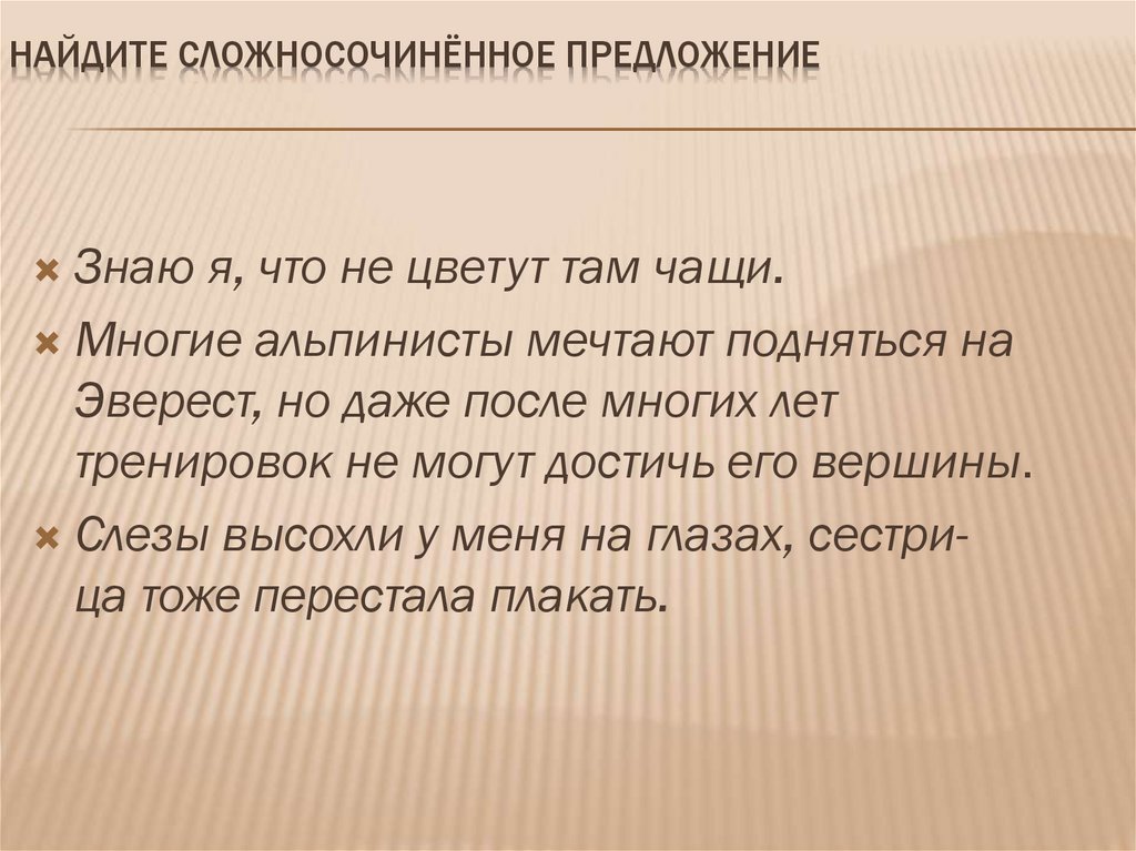 НАЙДИТЕ СЛОЖНОСОЧИНЁННОЕ ПРЕДЛОЖЕНИЕЗнаю я, что не цветут там чащи.