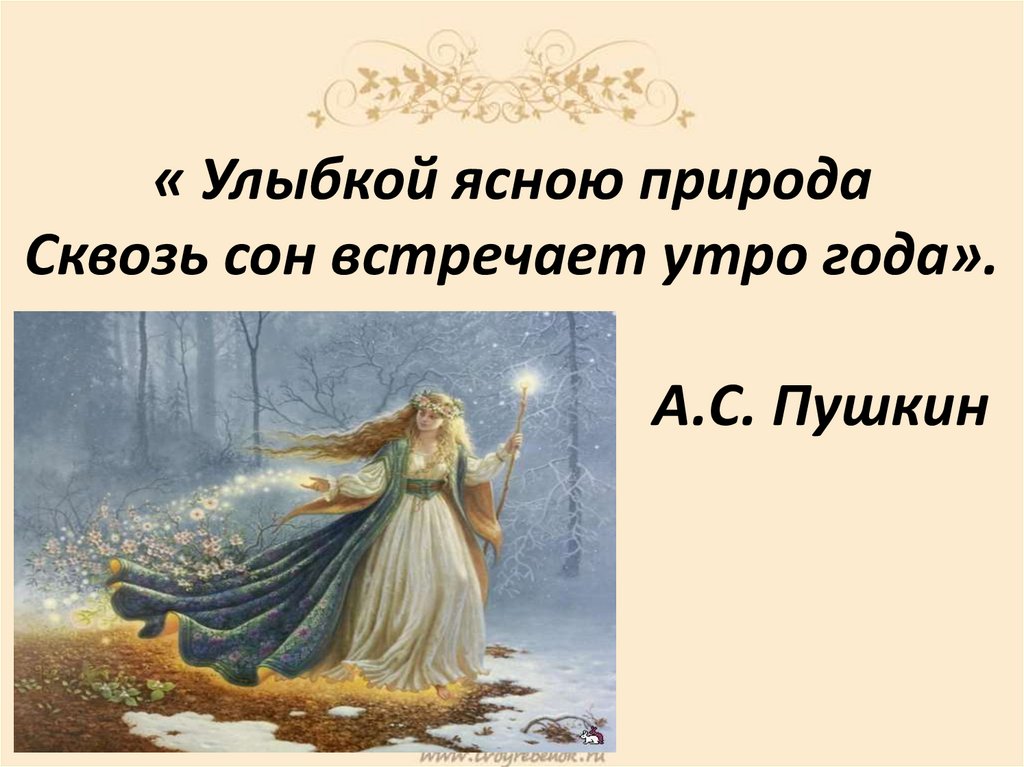 « Улыбкой ясною природаСквозь сон встречает утро года».