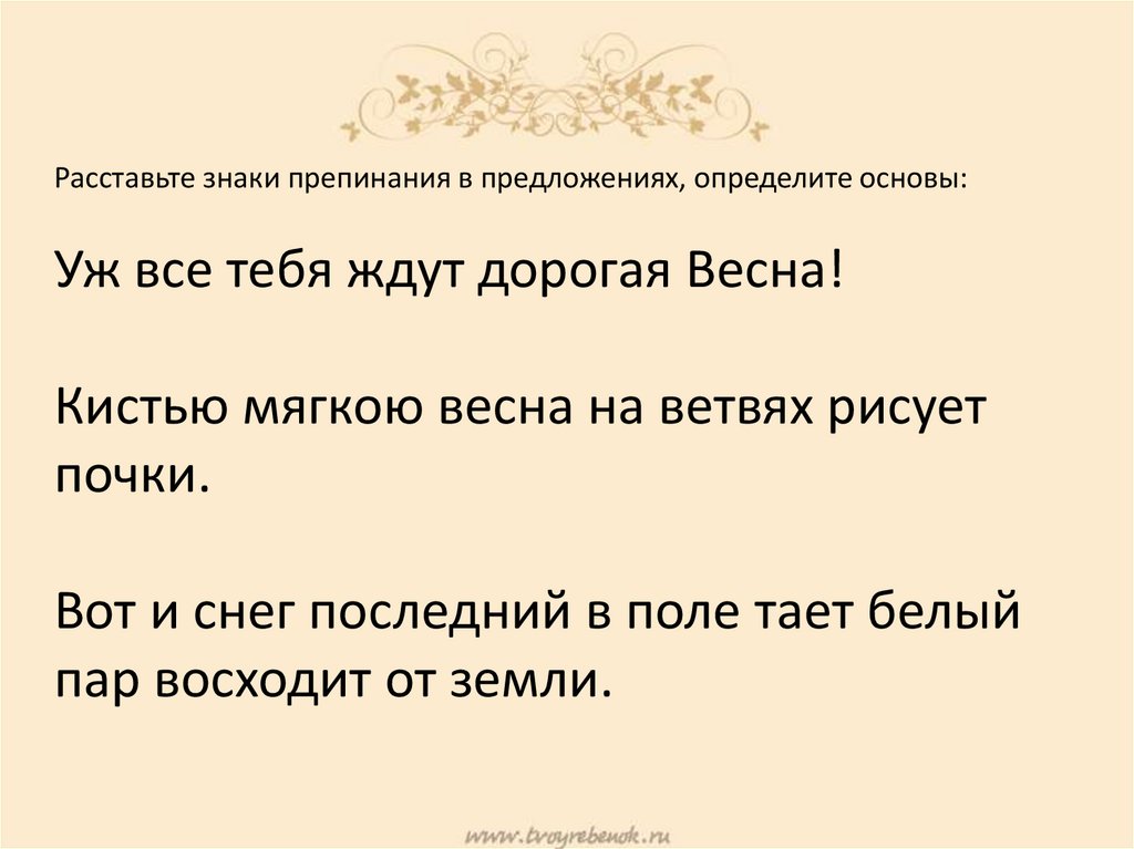 Расставьте знаки препинания в предложениях, определите основы:Уж все тебя ждут дорогая Весна!
