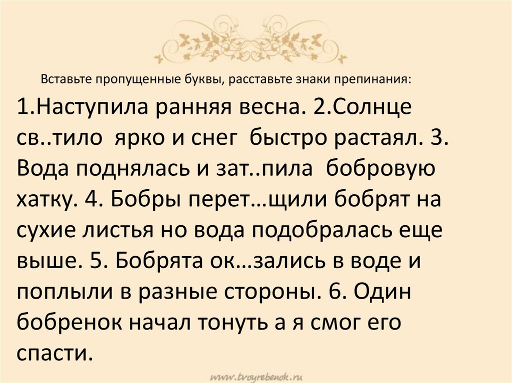 выше. 5. Бобрята ок…зались в воде и
