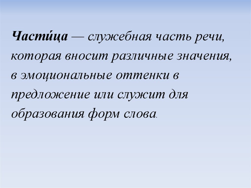 Части́ца — служебная часть речи,которая вносит различные значения,