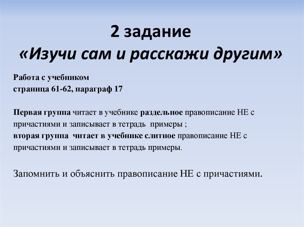 Первая группа читает в учебнике раздельное правописание НЕ с