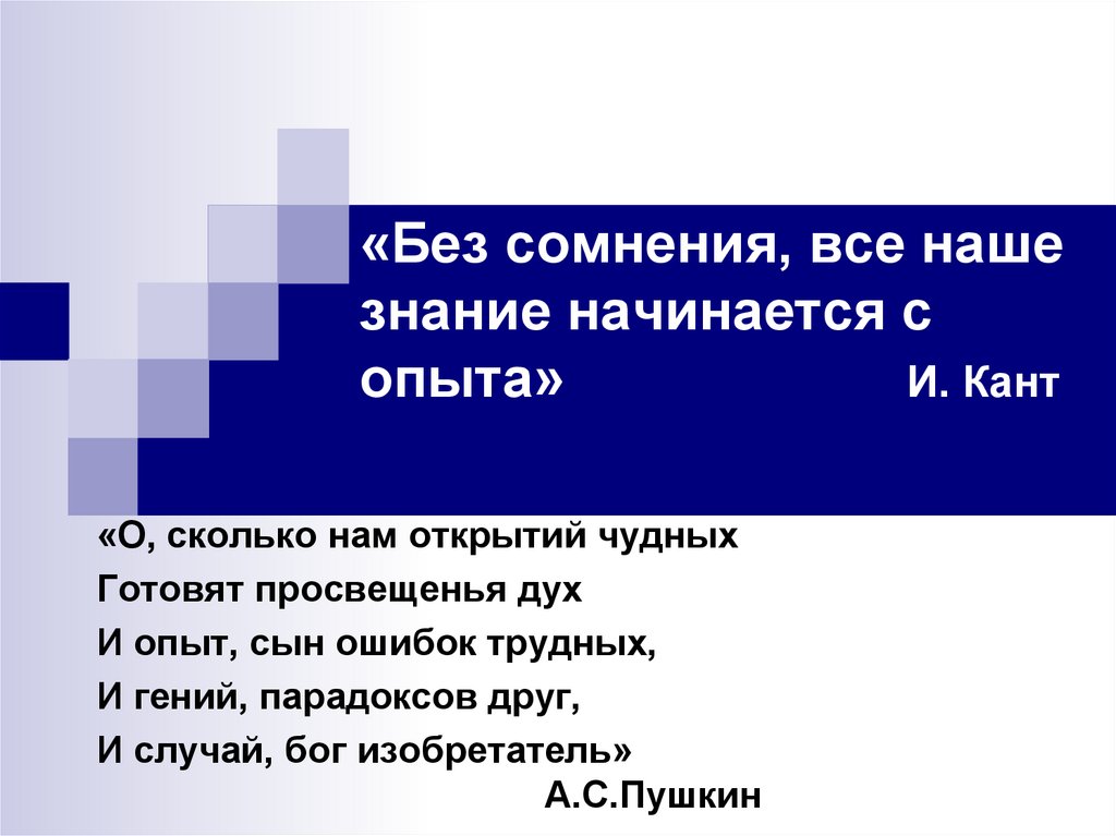 1. «Без сомнения, все наше знание начинается с опыта» И. Кант