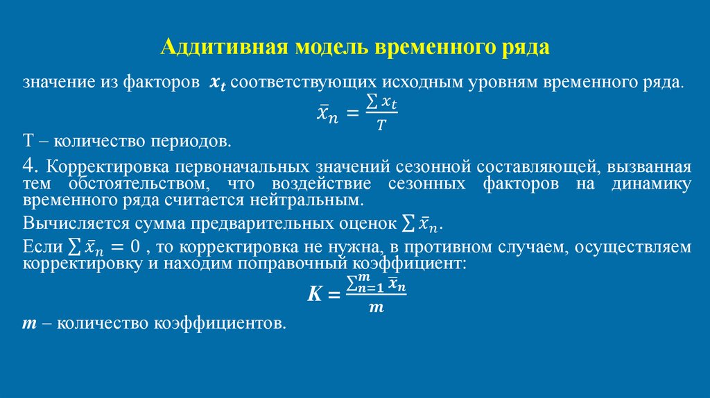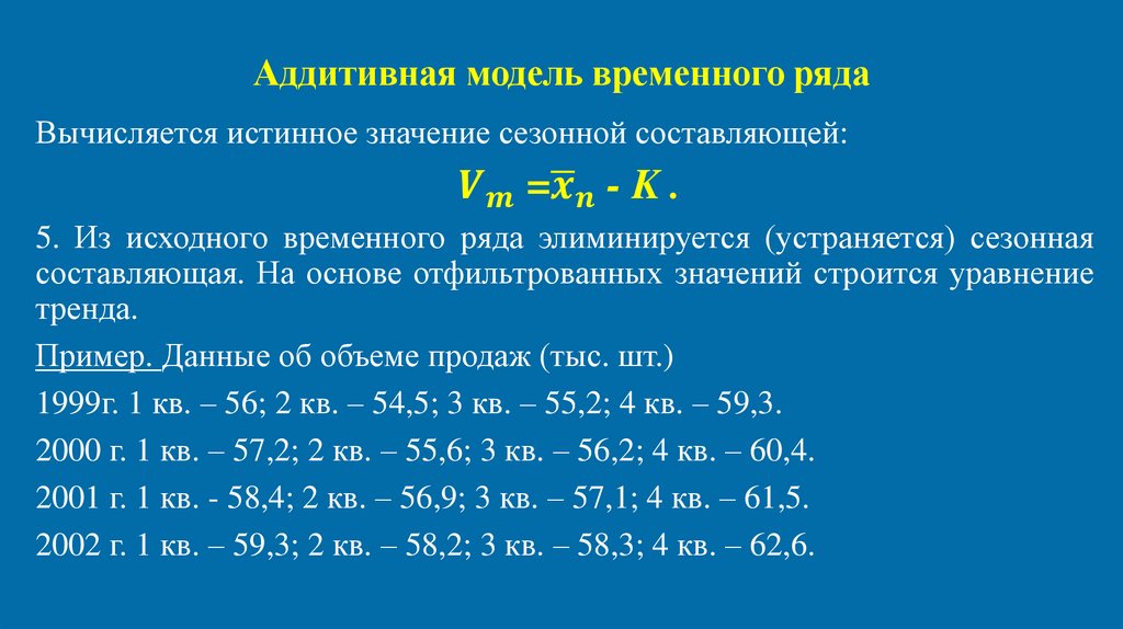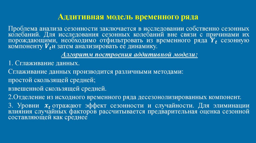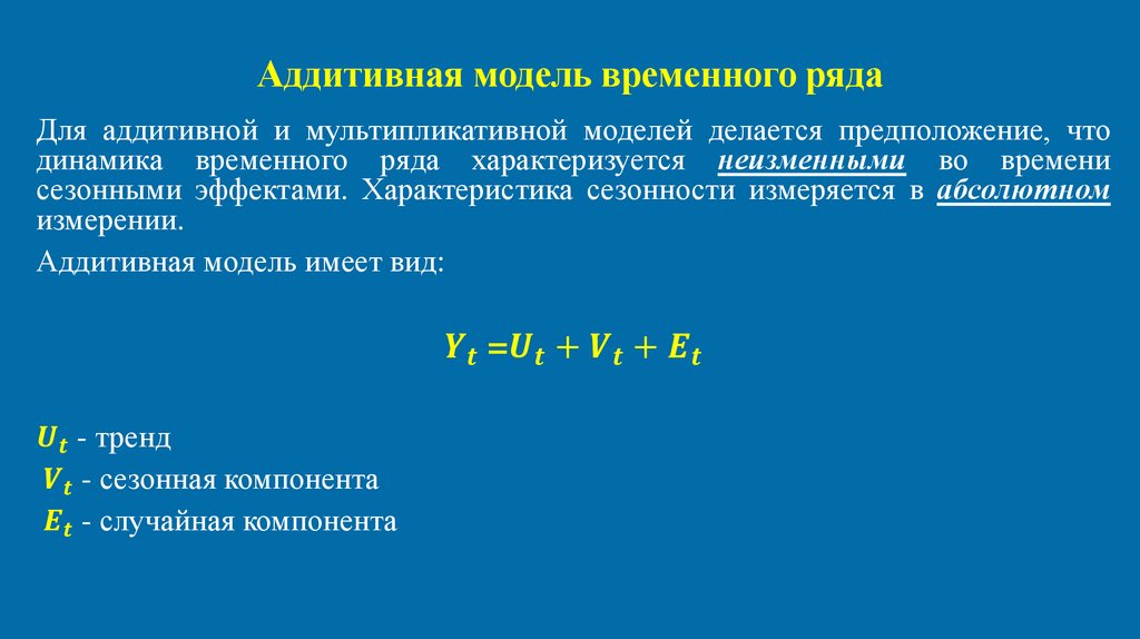 Аддитивная модель временного рядаДля аддитивной и мультипликативной моделей делается предположение, что