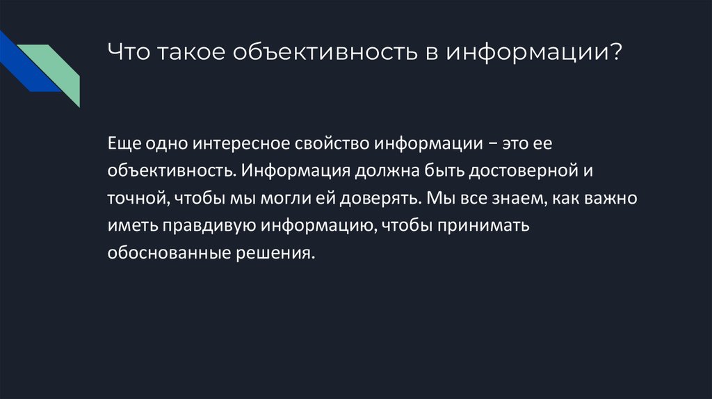 Что такое объективность в информации?Еще одно интересное свойство информации – это ее