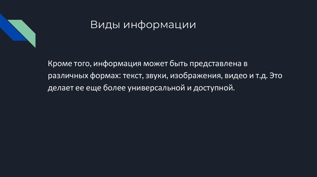 различных формах: текст, звуки, изображения, видео и т.д. Это