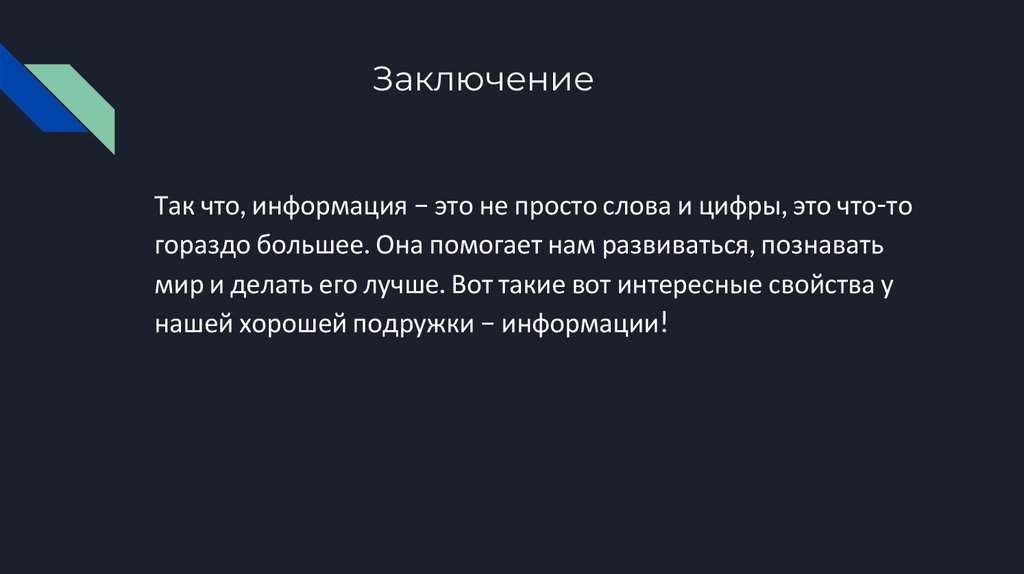 ЗаключениеТак что, информация – это не просто слова и цифры, это что-то