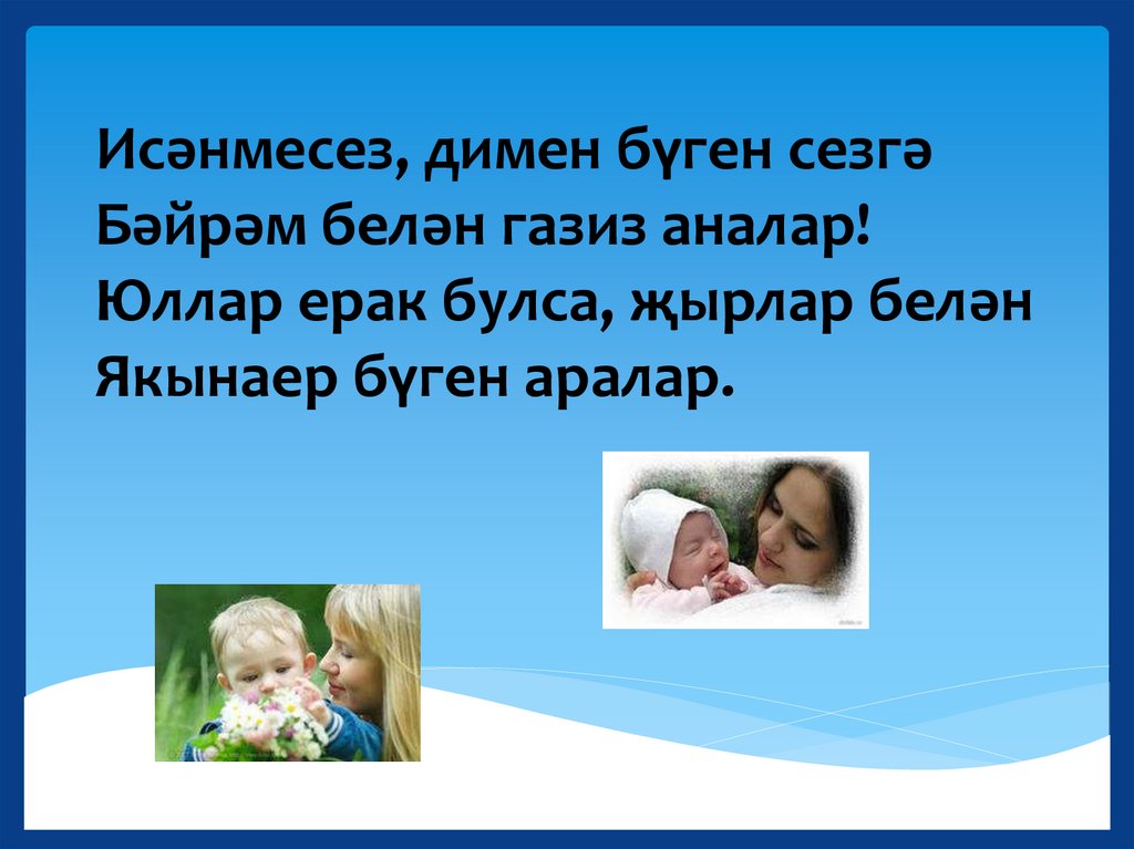 Исәнмесез, димен бүген сезгәБәйрәм белән газиз аналар!