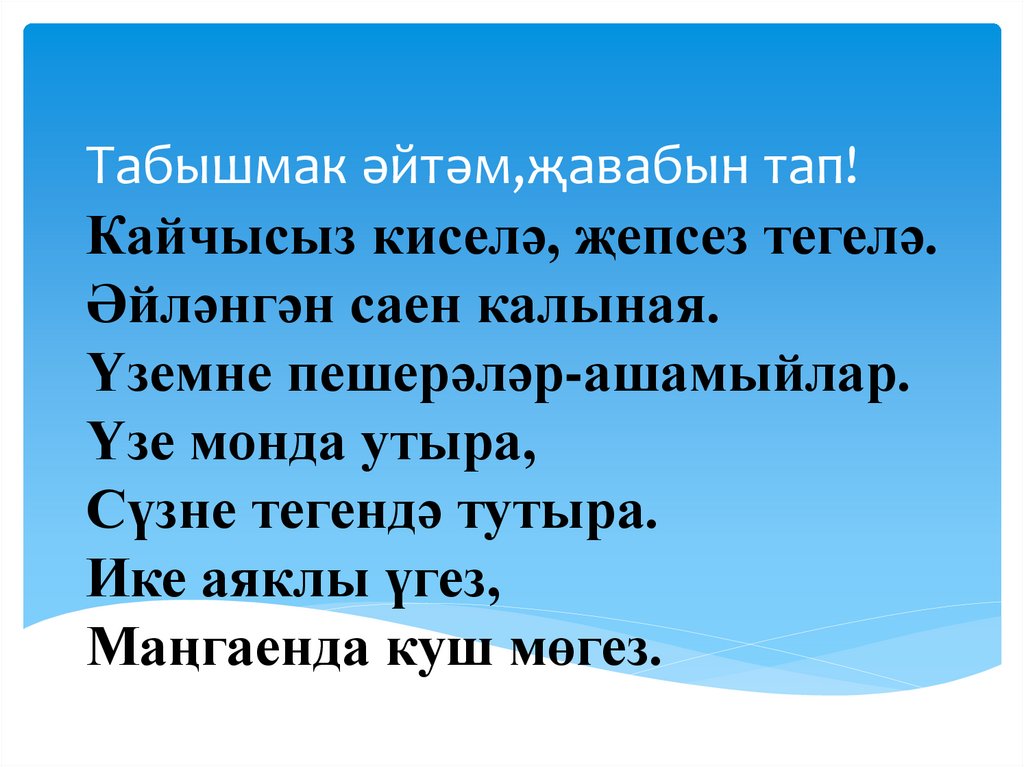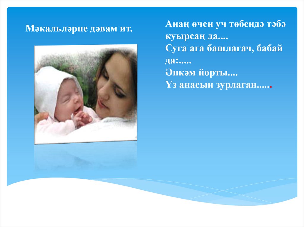 Мәкальләрне дәвам ит.Анаң өчен уч төбендә тәбә