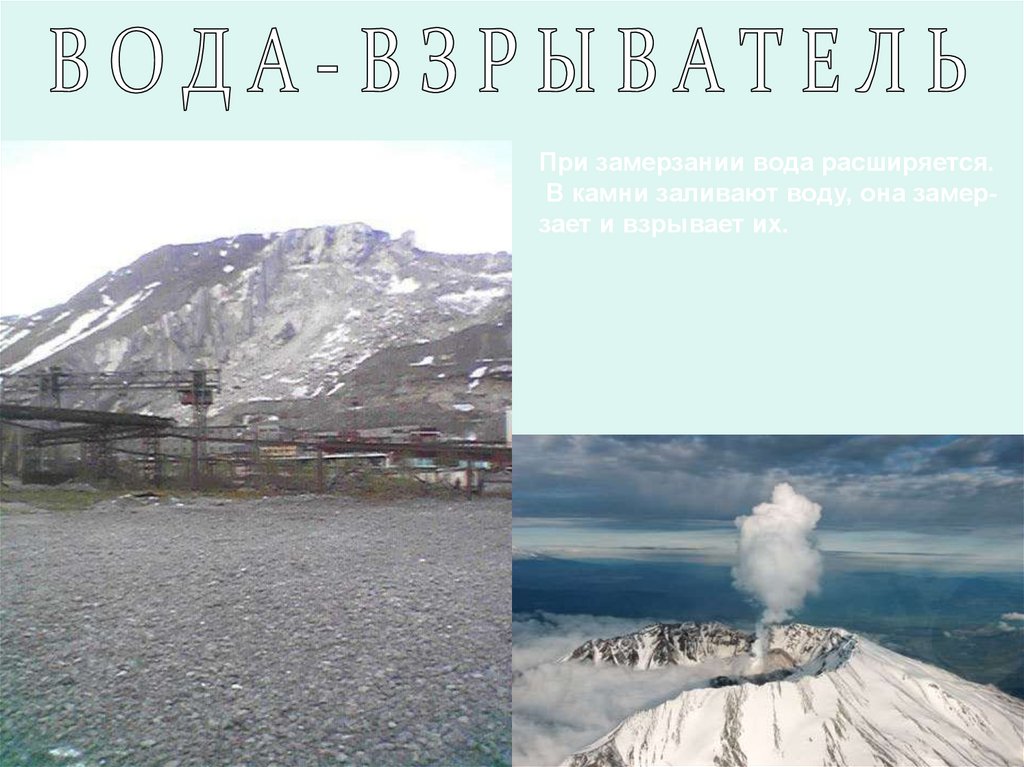 При замерзании вода расширяется.В камни заливают воду, она замерзает и взрывает их.