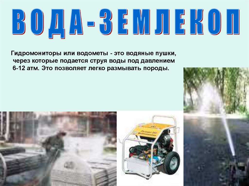 Гидромониторы или водометы - это водяные пушки,через которые подается струя воды под давлением