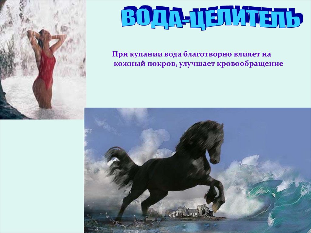 При купании вода благотворно влияет накожный покров, улучшает кровообращение