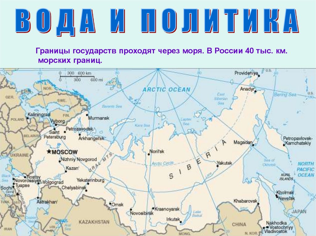 Границы государств проходят через моря. В России 40 тыс. км.морских границ.
