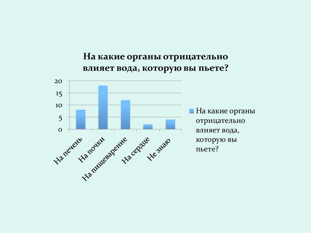 На какие органы отрицательновлияет вода, которую вы пьете?