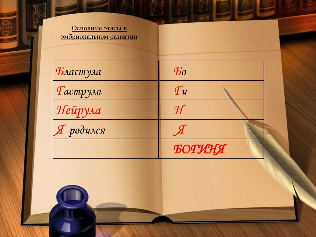 Основные этапы вэмбриональном развитии