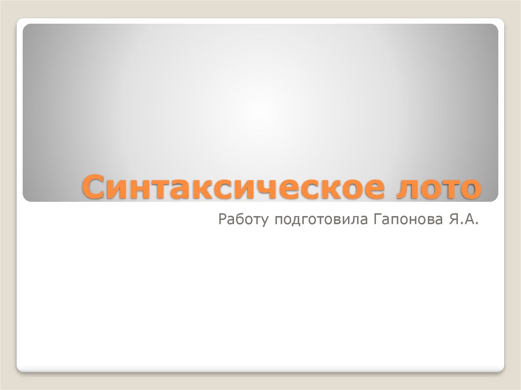 Синтаксическое лотоРаботу подготовила Гапонова Я.А.