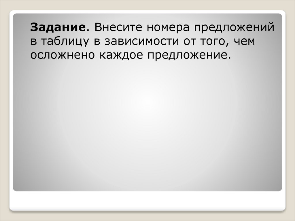 Задание. Внесите номера предложенийв таблицу в зависимости от того, чем