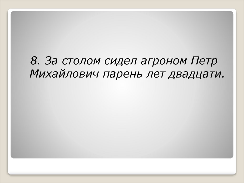 8. За столом сидел агроном ПетрМихайлович парень лет двадцати.
