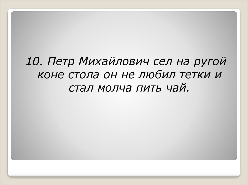 10. Петр Михайлович сел на ругойконе стола он не любил тетки и
