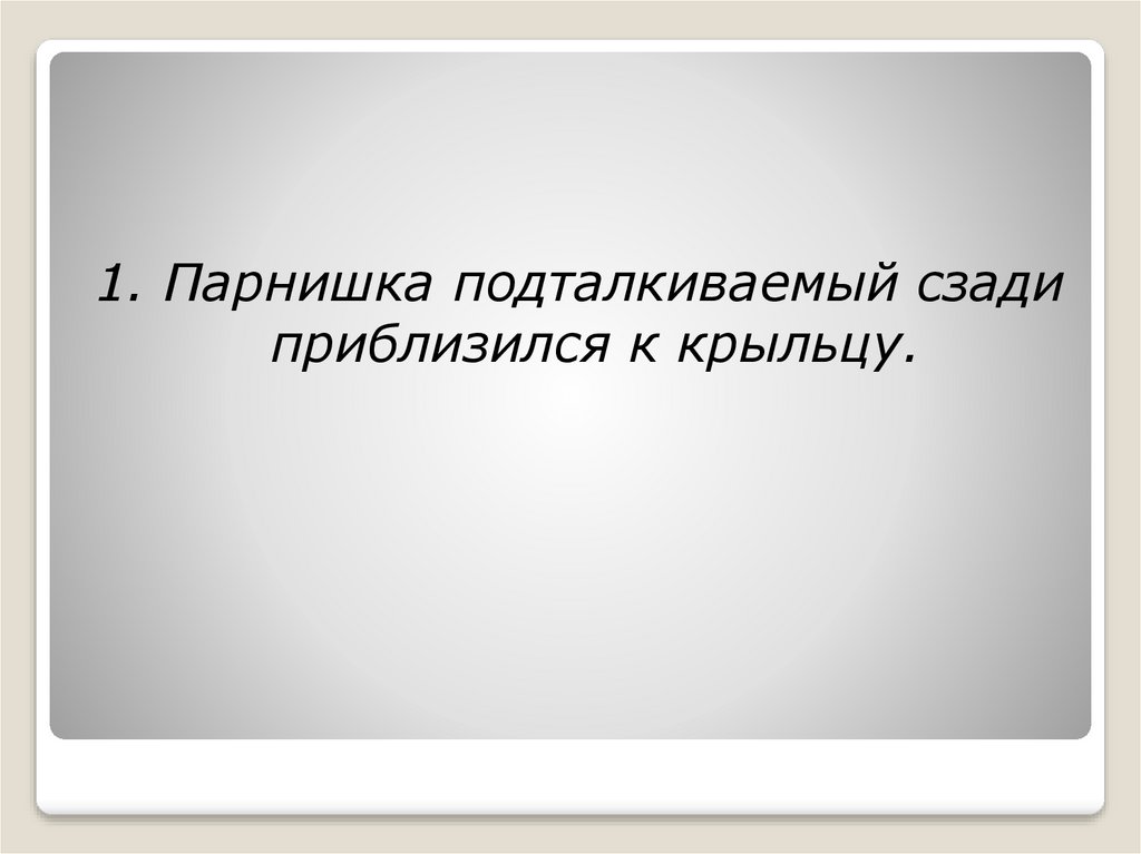1. Парнишка подталкиваемый сзадиприблизился к крыльцу.