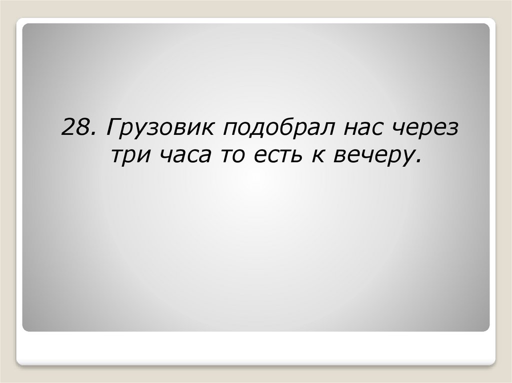 28. Грузовик подобрал нас черезтри часа то есть к вечеру.