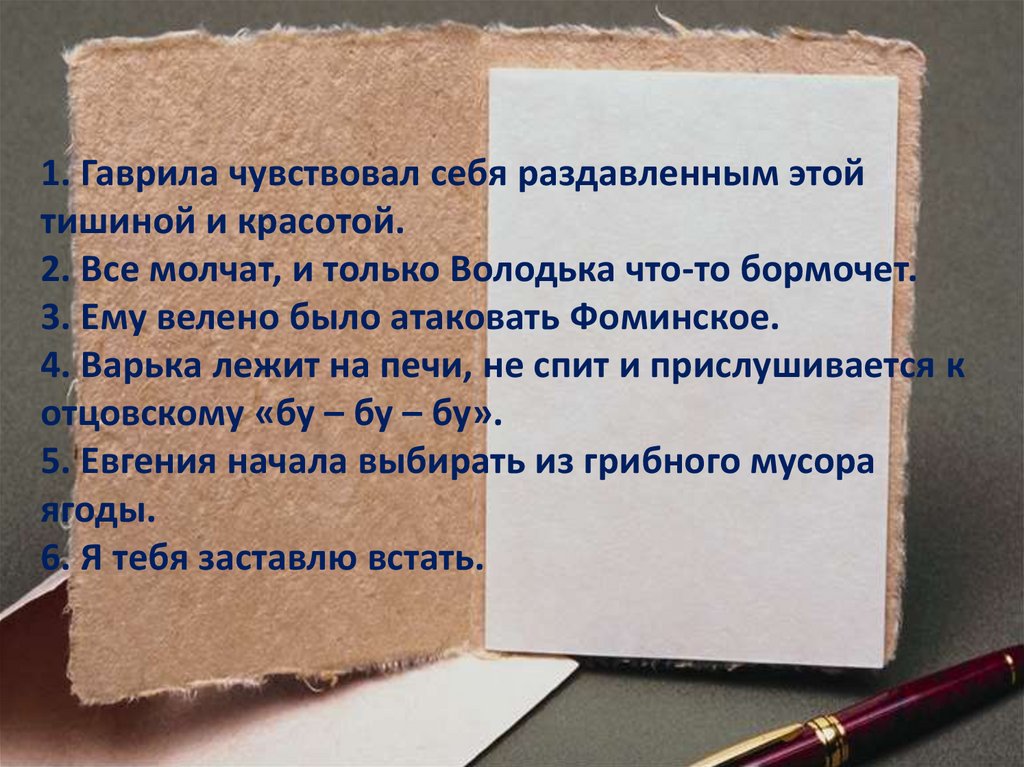 1. Гаврила чувствовал себя раздавленным этойтишиной и красотой.