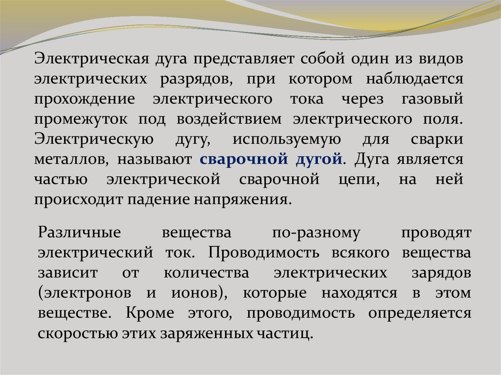 Электрическая дуга представляет собой один из видовэлектрических разрядов, при котором наблюдается