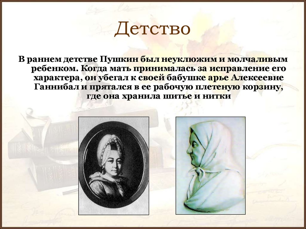 ДетствоВ раннем детстве Пушкин был неуклюжим и молчаливым