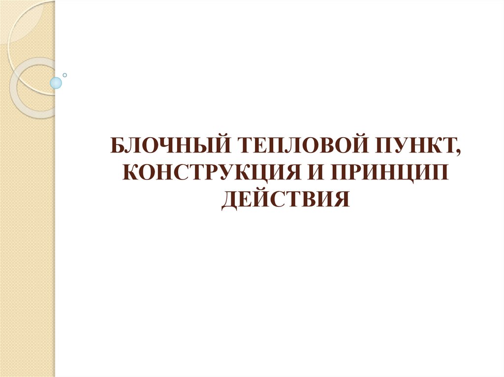 БЛОЧНЫЙ ТЕПЛОВОЙ ПУНКТ,КОНСТРУКЦИЯ И ПРИНЦИП