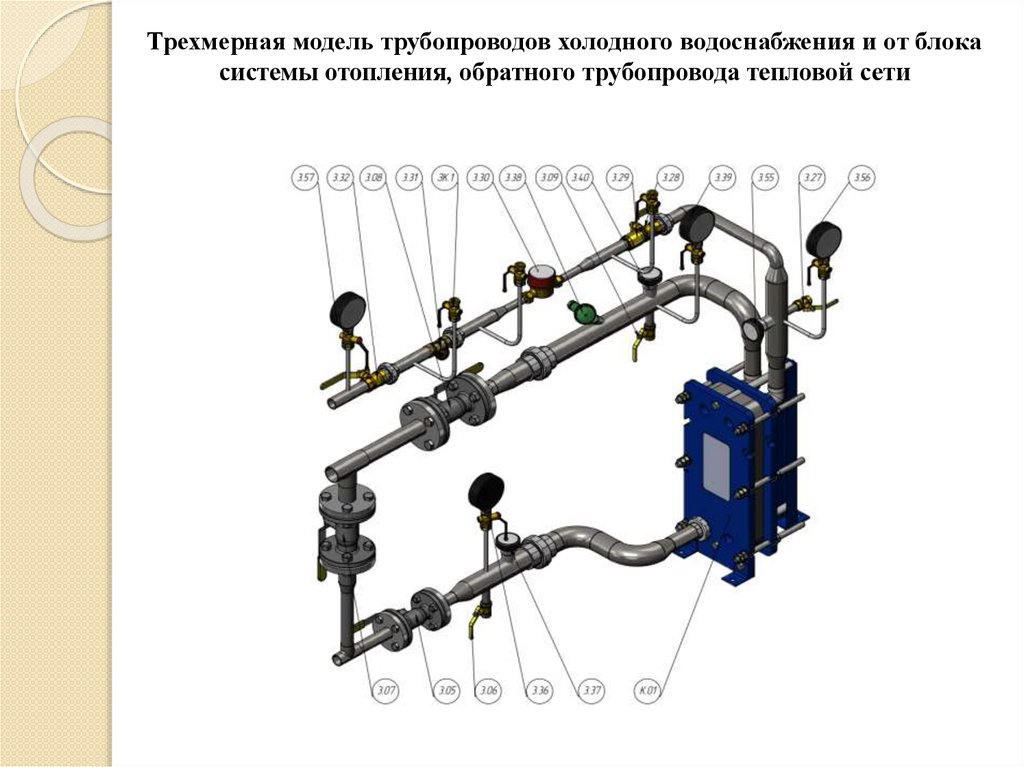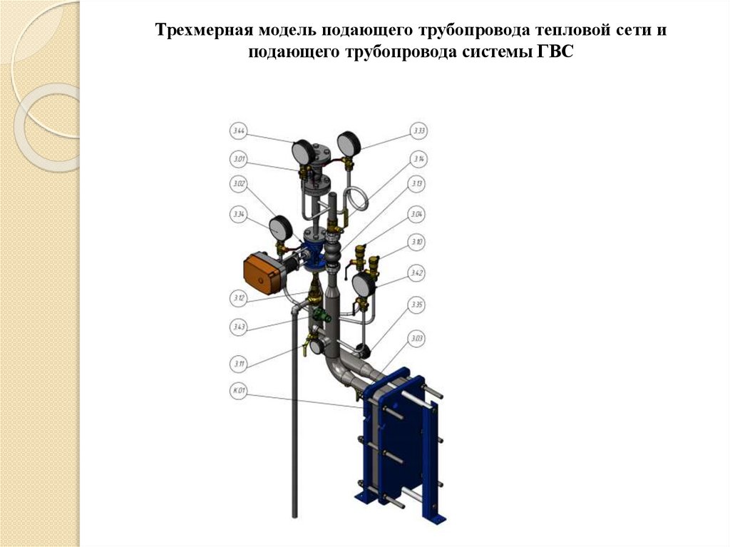 Трехмерная модель подающего трубопровода тепловой сети иподающего трубопровода системы ГВС