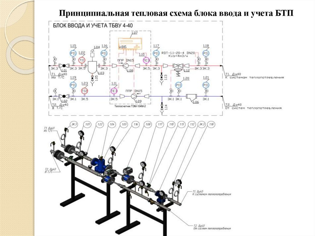 Принципиальная тепловая схема блока ввода и учета БТП4.