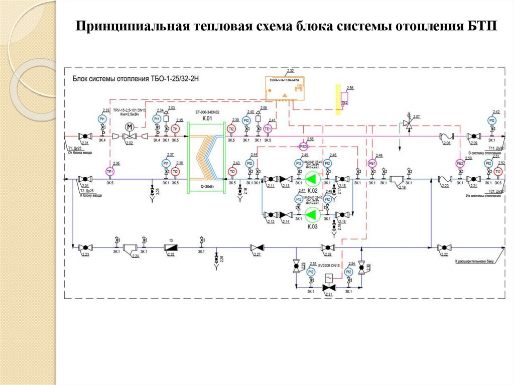 Принципиальная тепловая схема блока системы отопления БТП5.
