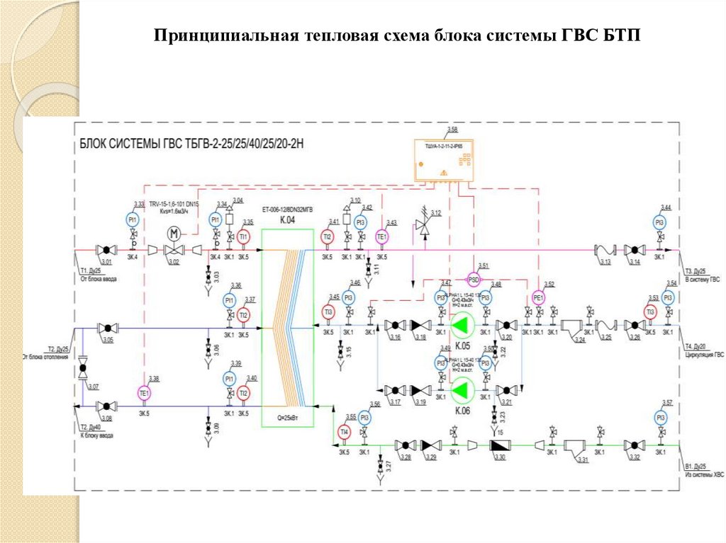 Принципиальная тепловая схема блока системы ГВС БТП10.