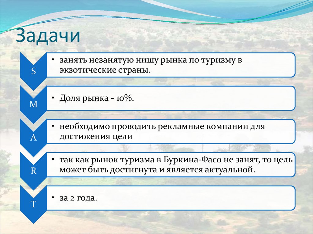 • так как рынок туризма в Буркина-Фасо не занят, то цель