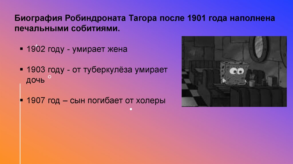 Биография Робиндроната Тагора после 1901 года наполненапечальными собитиями.
