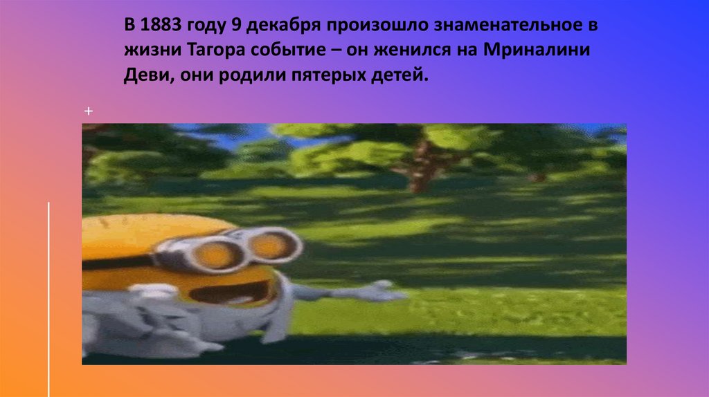 В 1883 году 9 декабря произошло знаменательное вжизни Тагора событие – он женился на Мриналини