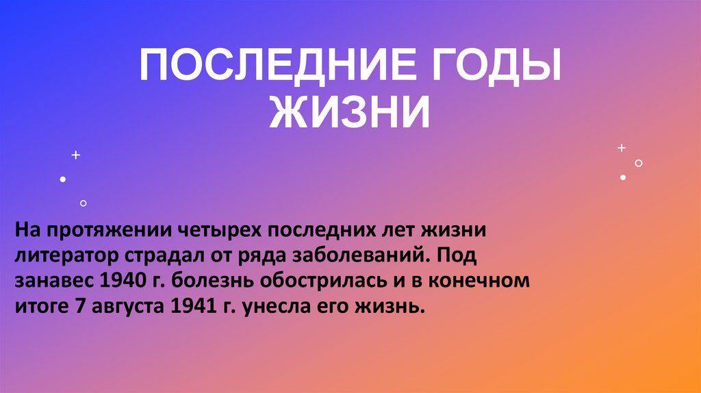 ПОСЛЕДНИЕ ГОДЫЖИЗНИ