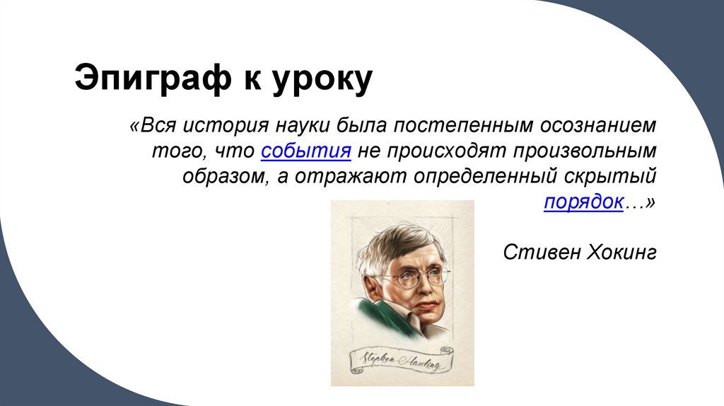 Эпиграф к уроку«Вся история науки была постепенным осознанием
