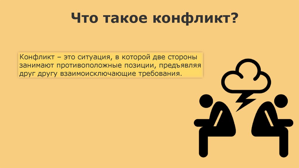 Что такое конфликт?Конфликт – это ситуация, в которой две стороны