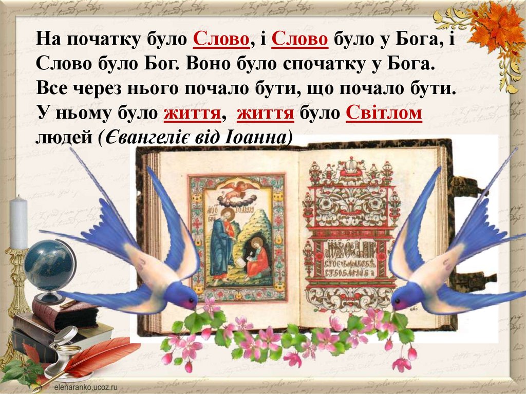 На початку було Слово, і Слово було у Бога, іСлово було Бог. Воно було спочатку у Бога.