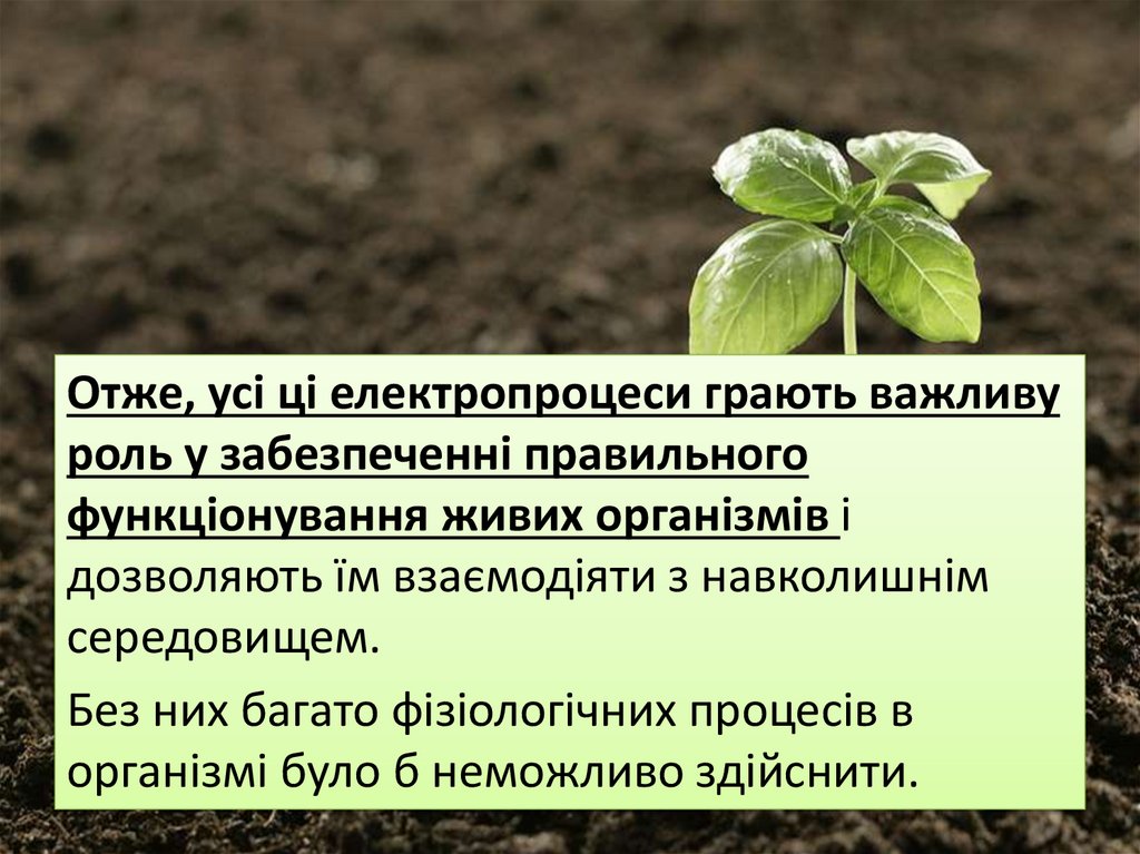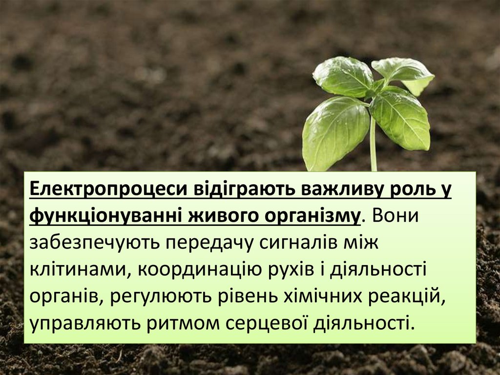 Електропроцеси відіграють важливу роль уфункціонуванні живого організму. Вони