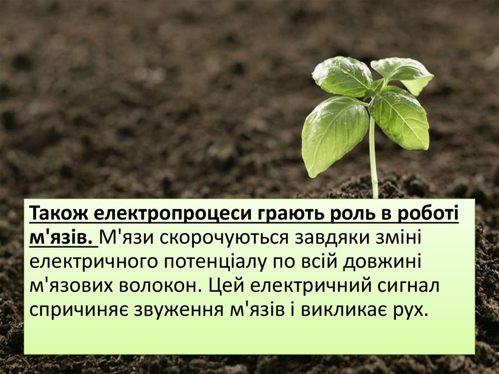 Також електропроцеси грають роль в роботім'язів. М'язи скорочуються завдяки зміні
