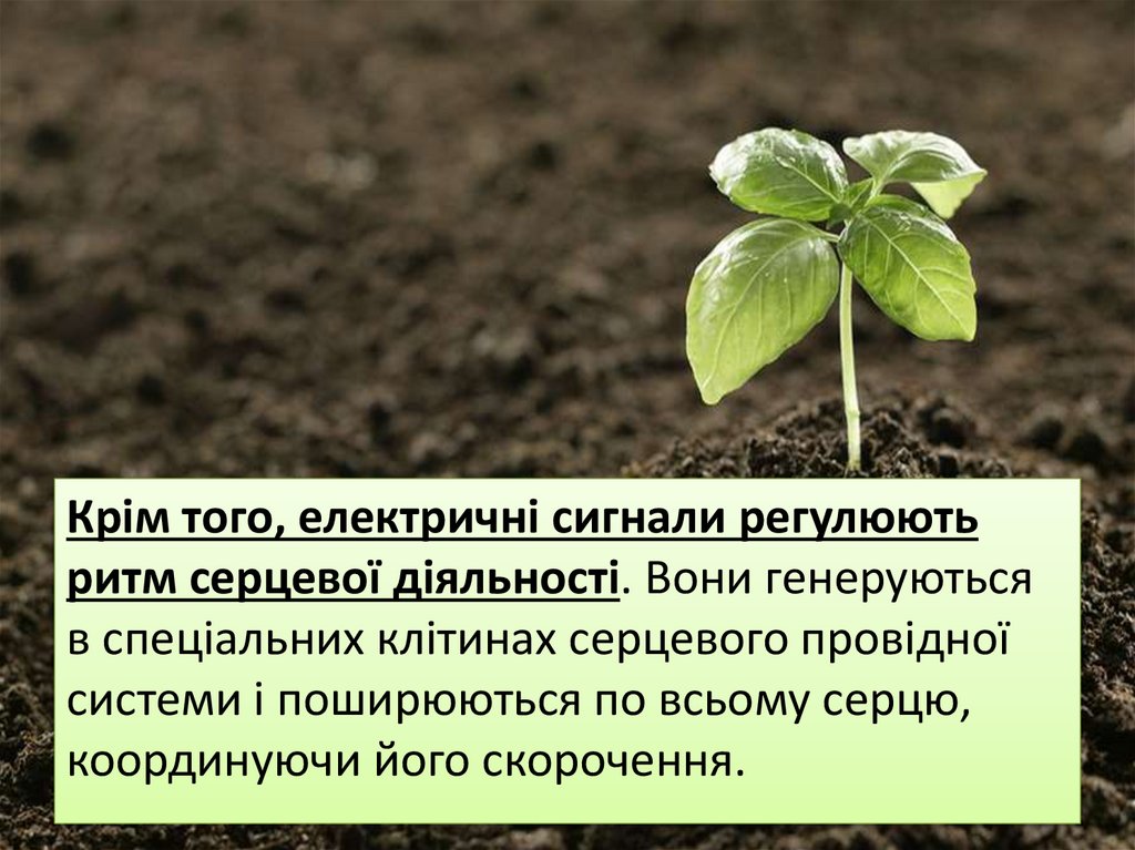 Крім того, електричні сигнали регулюютьритм серцевої діяльності. Вони генеруються