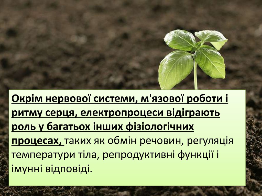 Окрім нервової системи, м'язової роботи іритму серця, електропроцеси відіграють