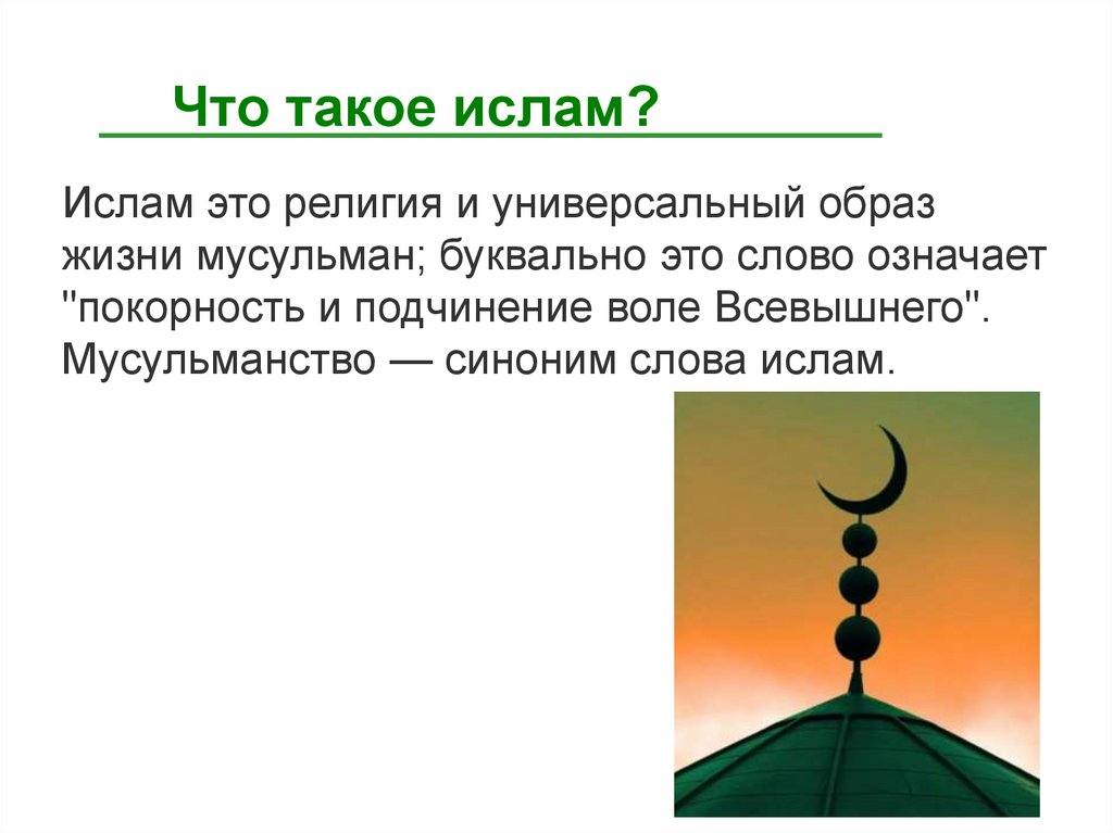 Что такое ислам?Ислам это религия и универсальный образ
