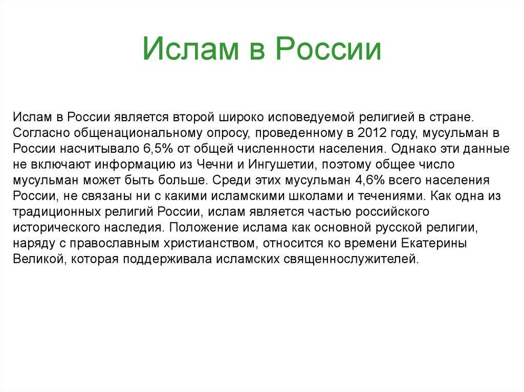 исторического наследия. Положение ислама как основной русской религии,