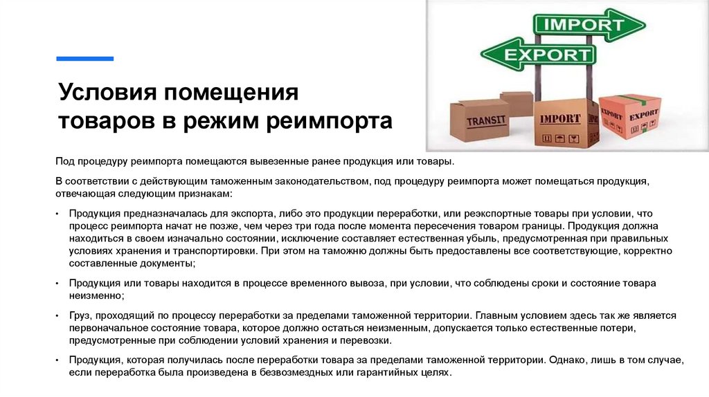 Условия помещениятоваров в режим реимпорта