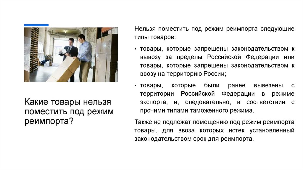 Нельзя поместить под режим реимпорта следующиетипы товаров: